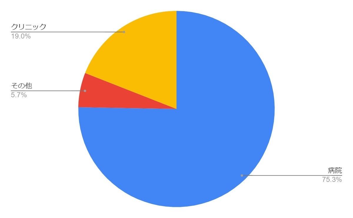 病院での勤務が全体の約75%を占める結果となりました。(その他には企業・健診センター・診療所・公的機関・老人保健施設などを含む)