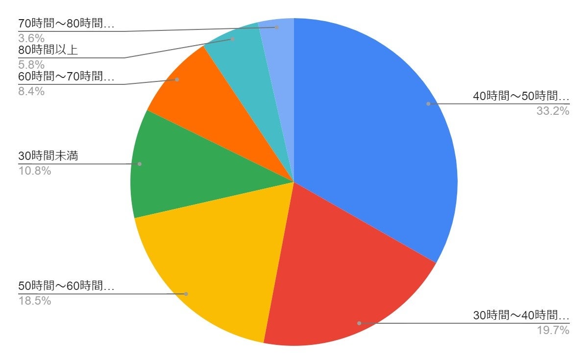・法定労働時間(週40時間)を超える医師は全体の69.5%