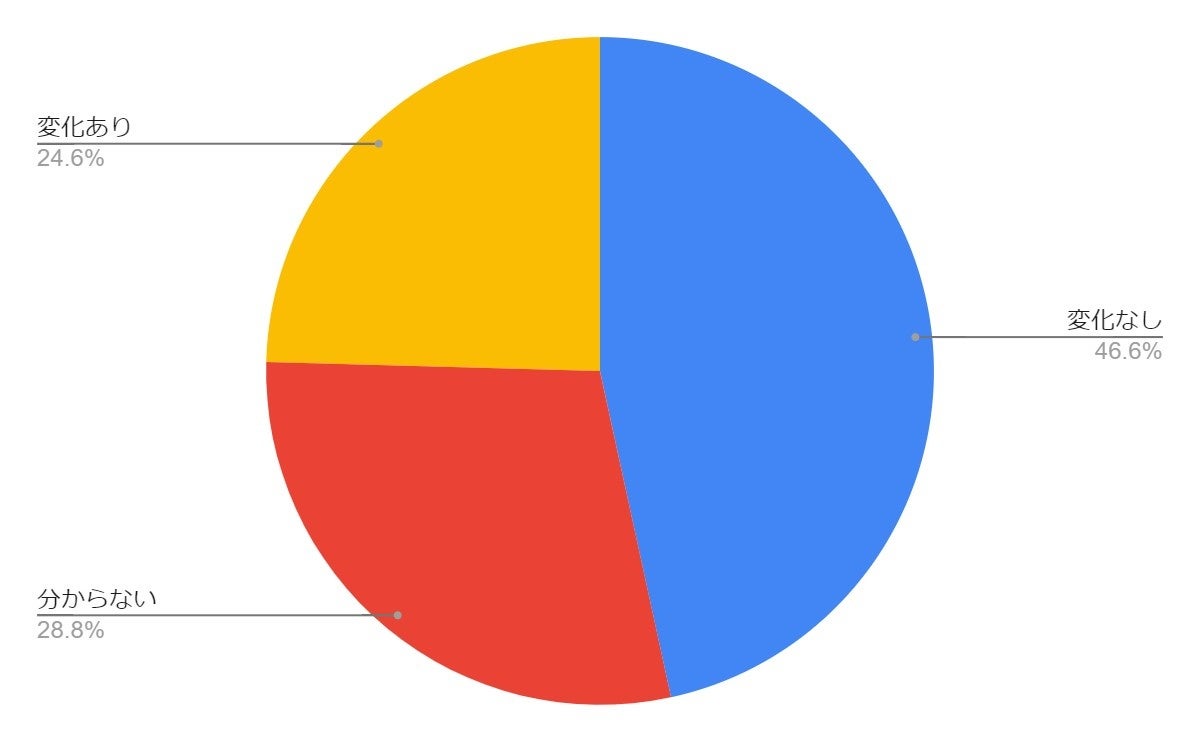 ・変化ありもしくは分からないと回答している医師が全体の53.4%